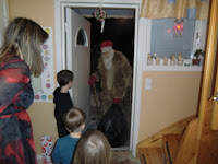 Agatons kompisar Angelina och Joeline var på besök för några dagar sen. Angelina har brutit benet efter slalomåkning och hade därför en lånad rullstol med sig hem till oss. Den ville Agaton prova. Det var inte det lättaste men han gjorde ett försök att styra den in till sitt rum och tillbaka. John fick hjälpa till lite.måndag 17 januari 2011